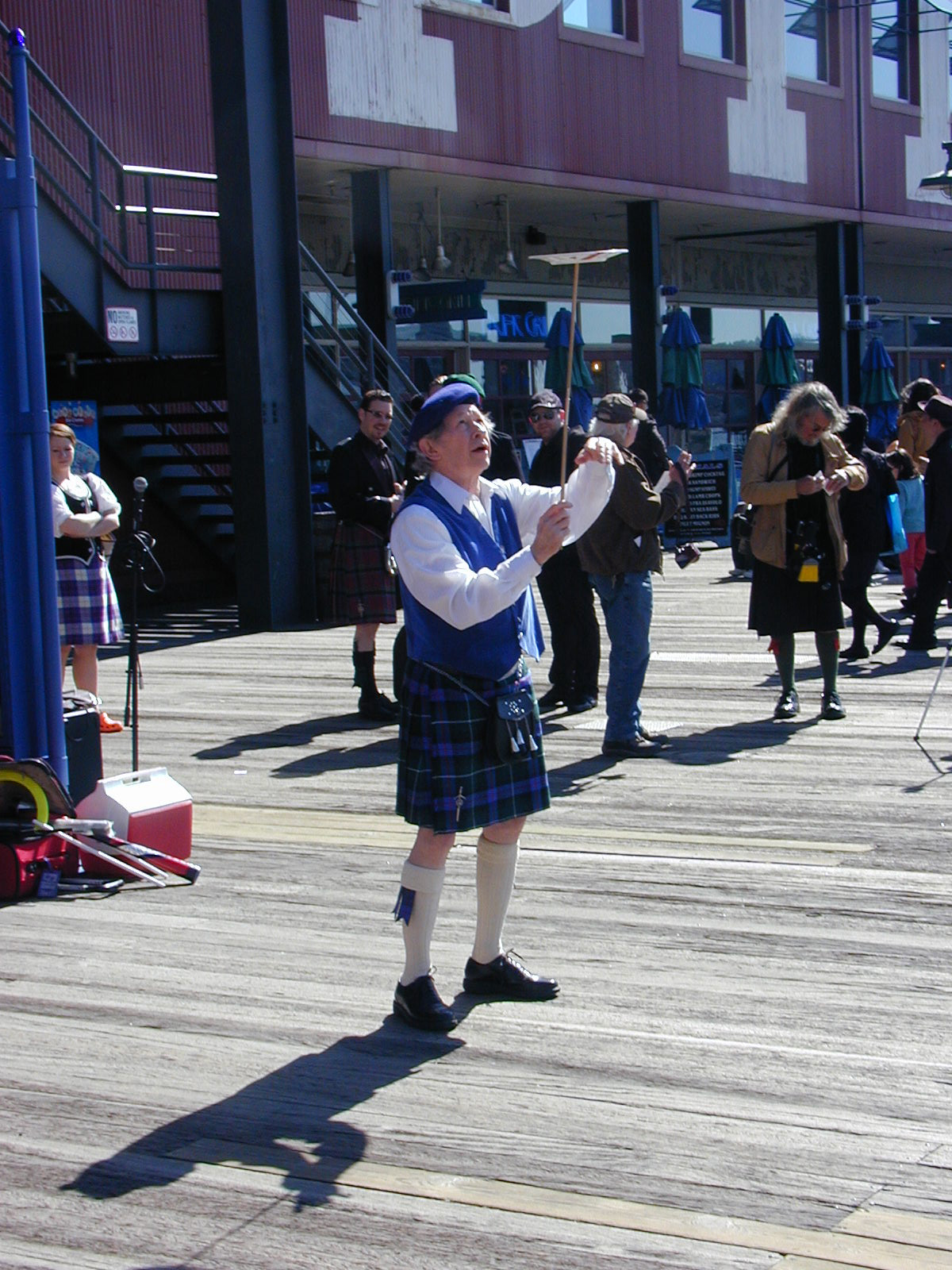 Other events occurred within the building itself. John Grimaldi, a kilted juggler from The New York Lyric Circus (Scottish with a new spin) appeared both indoors and outdoors and amazed the audiences with his juggling skills tossing various objects and spinning plates on slender rods.