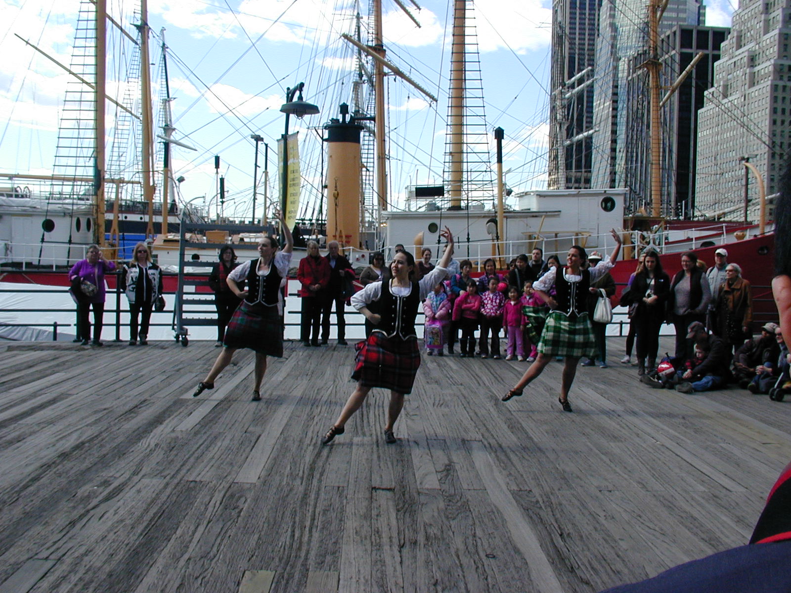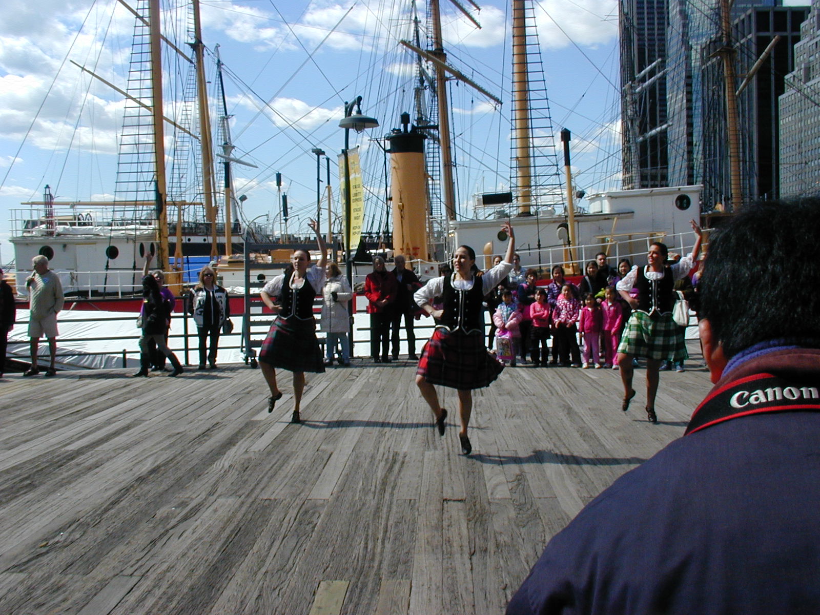 Clan Currie Society, the organizer of the Scottish activities at the Seaport, generally operates their part of the celebration on Ellis Island. Because of superstorm Sandy's impact on that island, the festivities this year were shifted to a different island - Manhattan, and specifically to South Street Seaport. The Seaport itself suffered major damage during the storm and many businesses in the vicintiy remain closed to this day, but Pier 17, the major building on the pier which houses many of the shops and restaurants has managed to reopen.